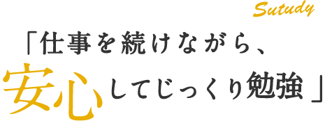 当スクールは、仕事を続けながら、安心してじっくり勉強していただけるように開校しました。